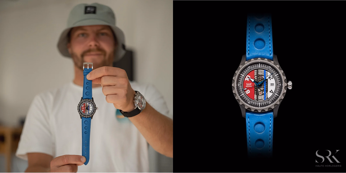 Valtteri Bottas, once synonymous with Oris during his tenure with Williams and Mercedes, has since embraced his home country’s haute horlogerie brand, Sarpaneva. In collaboration with Sarpaneva's S.U.F Helsinki line, Bottas co-designed the Flying Finn VB77, a limited edition of 77 pieces, which is Bottas’s racing number. He's been seen rocking this timepiece lately, which is openworked in unusual fashion to showcase its intriguing date wheel—this hand-finished date wheel reads ‘77’ on the 7th day of the month, which is Bottas’s racing number.