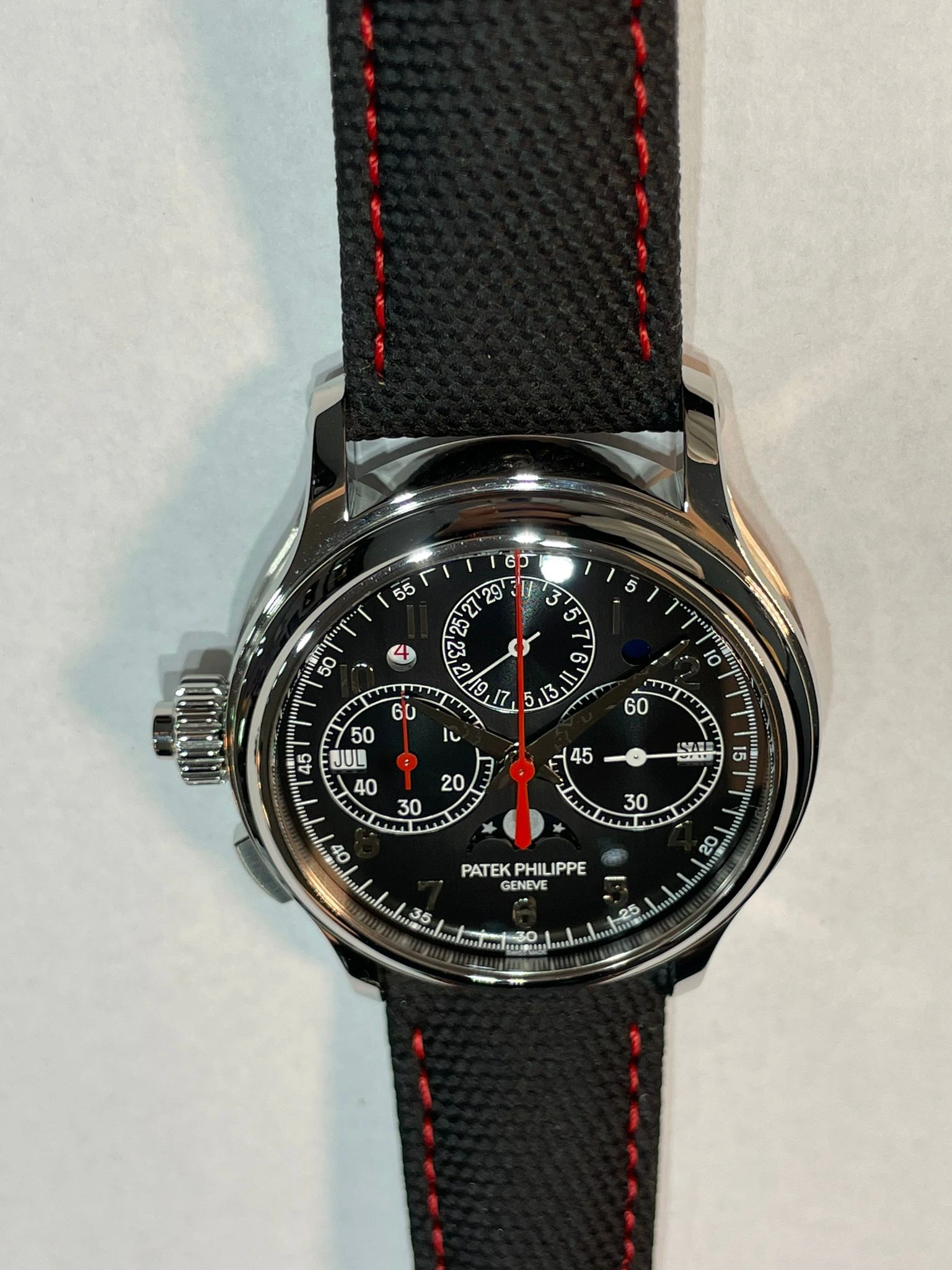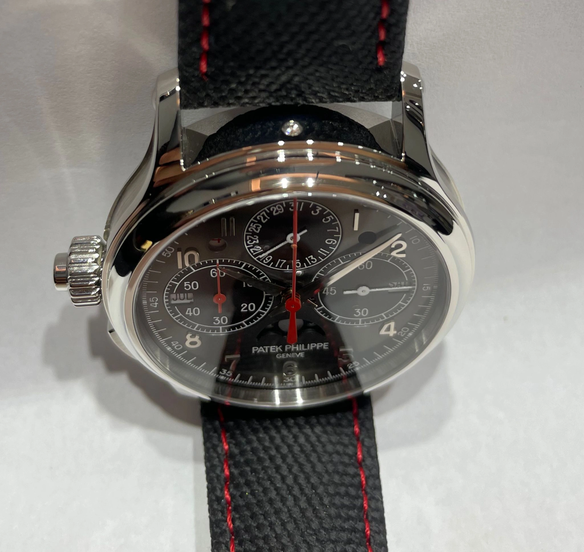 An extremely rare and complex Patek Philippe created for a left-handed wearer ("destro"), with the crown and chronograph pushers unconventionally placed on the left side.