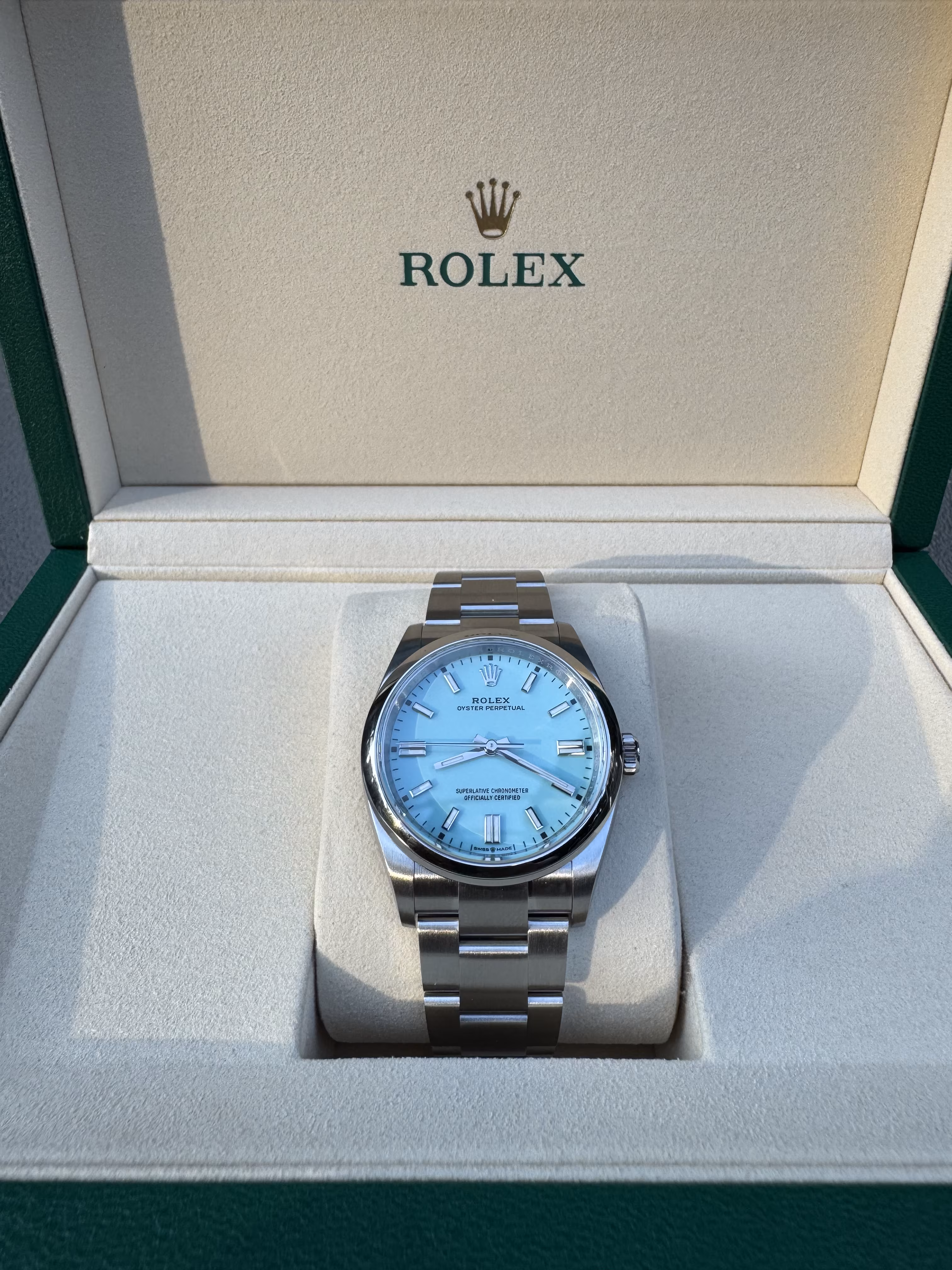 The Rolex Oyster Perpetual 36, reference 126000, embodies pure and timeless watchmaking. Housed in a robust 36mm Oystersteel case with a smooth, domed bezel, it offers universal appeal and everyday versatility. Powered by the high-performance Calibre 3230, it ensures superlative chronometric precision. Celebrated for its vibrant array of lacquered dial colors, the 126000 blends classic Rolex heritage with a fresh, contemporary spirit, making it a staple for any discerning watch enthusiast.
