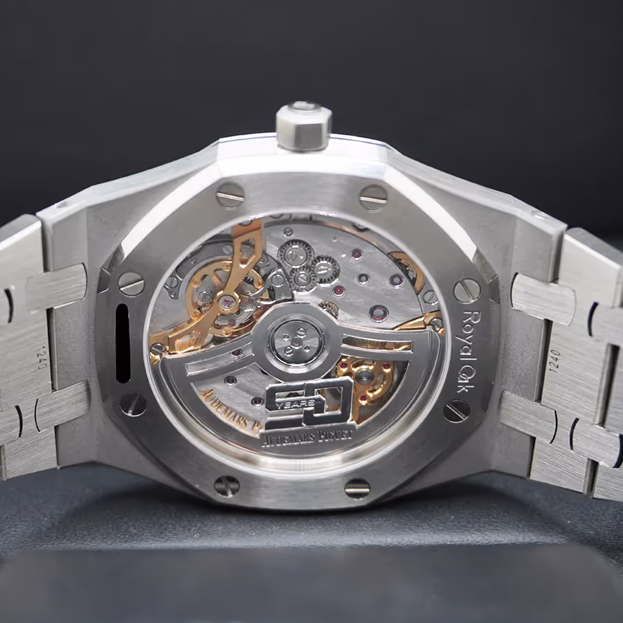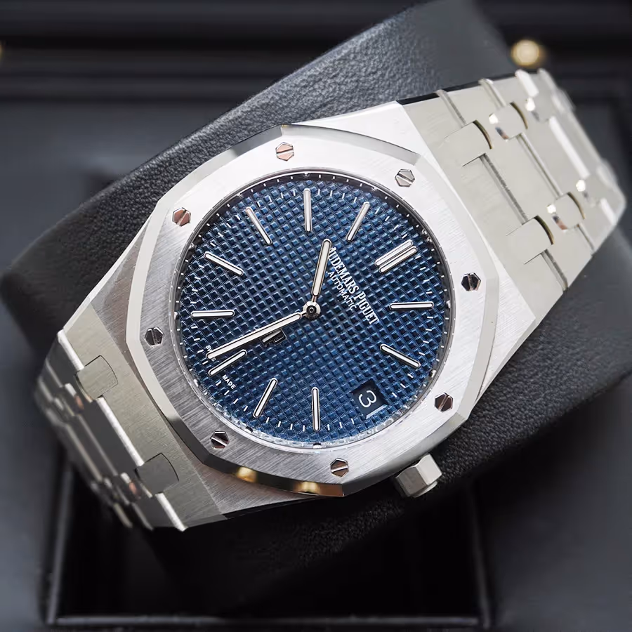 The faithful modern recreation of the original 1972 Royal Oak. This extra-thin model features the iconic petite tapisserie blue dial, embodying Genta's revolutionary design.